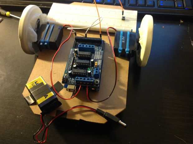 Queríamos mostrarle, cómo empezar con la robótica en barato. Los gastos más grandes fueron arduino, protector de motor y motores, unos 30-40 $. Otras partes pueden encontrarse en casa por lo que la plataforma es barata.