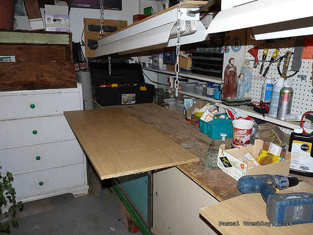 tengo una casa muy pequeña y necesito poner las semillas. Tengo una mesa de ping-pong plegable en el sótano y el pondría el espacio adicional por debajo de ella buen uso del pensamiento. Puesto que los lados se pliegan, sabía que acceso sería fácil