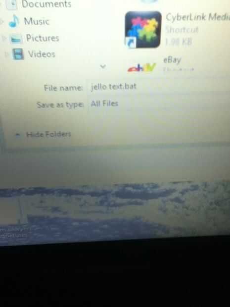 al pulsar archivo y guardar. Ahora es importante guarde el archivo como .bat o de lo contrario no funcionará.