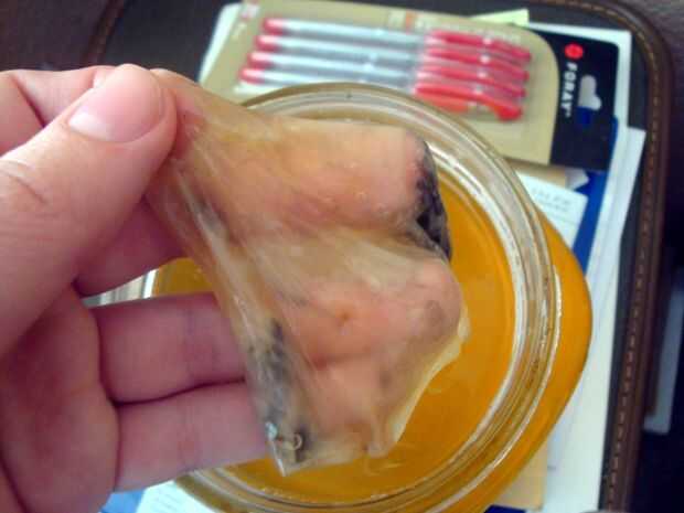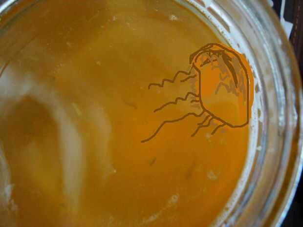 Después de unas horas, todas de la mugre que se ve normalmente en la parte inferior de la botella de kombucha comenzará a organizarse en grupos más grandes y flotan hacia la parte superior. La noche esta cosa espumosa se convertirá en algo no muy diferente de una medusa de hombre o de guerra. Si poke y prod tu Medusa poco se dará cuenta de que se separó hacia fuera a través de toda la superficie del té con la película invisible poca a poco. En el próximo par de días esta película será conseguir más grueso y más grueso y tomar el aspecto de la cultura familiar de la madre que has vistas todas las fotos de en internet.
