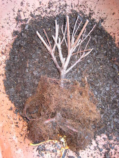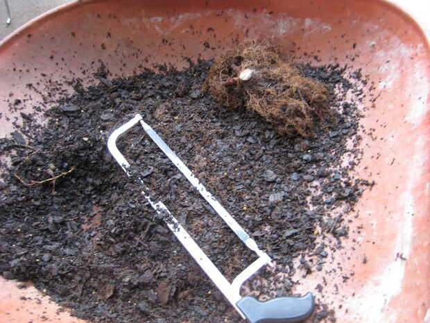 La imagen muestra algo que me ha sorprendido mucho por. El árbol aparece han en maceta en el bote con su original sistema de root casi convirtiéndose en la secundaria. Había un gran grupo de pequeñas raíces fibrosas (la clase que desee para bonsai), una pequeña sección de tronco, entonces lo que parecen ser las raíces de cuando la planta estaba en el suelo. Parece que gran parte de mi trabajo fue hecho por mí en cuanto a la formación de las raíces! Tomé una sierra y cortar el tronco en la base del mayor sistema radicular. Yo también poda volver algunos de los más largos/más gruesos que las raíces en la mitad superior. No sé si esta configuración de raíz una cosa común con plantas de vivero, pero lo ideal en este caso.