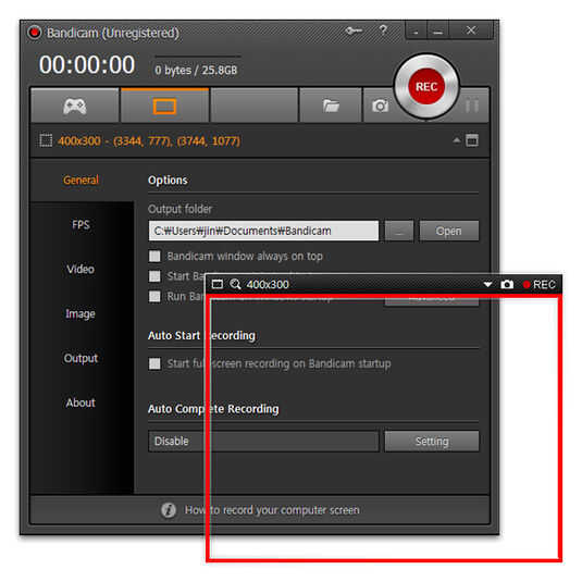 El siguiente es bandicam. Esto se utiliza principalmente para juegos de azar. Puede grabar durante 10 minutos para la versión gratuita pero existe una marca de agua.