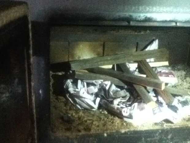 Tomar 4-6 palos de leña y colocar encima el periódico colocó en la estufa de leña.