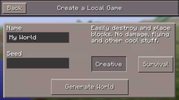Nombre de tu mundo, escoge una semilla y escoger un modo de juego.