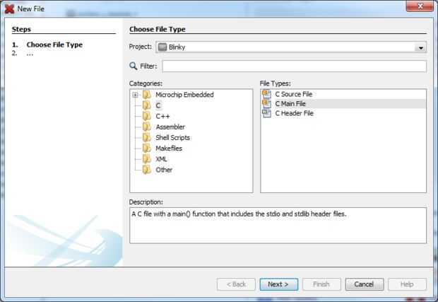 Seleccione "C" en el panel izquierdo y "Archivo principal de C" en el panel derecho, como en la foto de arriba. Haga clic en siguiente.