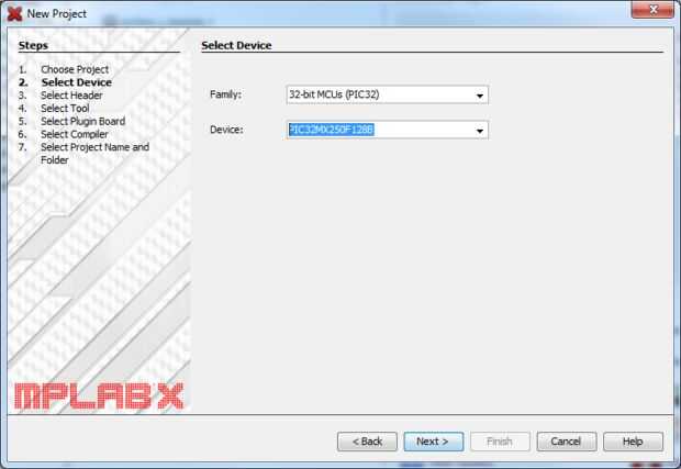La siguiente pantalla a que usted será llevado es la pantalla de "Seleccionar dispositivo". Este paso será diferente dependiendo de que placa chipKIT tienes.
