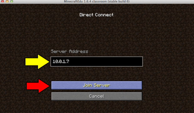En la pantalla 'Direct Connect', introduzca la dirección del servidor en el cuadro de texto y seleccione unirse a servidor para el servidor.