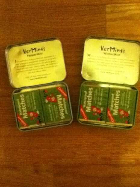 Para crear las chispas o llamas... incluí •el importante Bic encendedor •un magnesio barra contenedores de •dos •una luz mi fuego FireSteel sueco 2.0 de tormenta/huracán partidos • cuatro cajas de fósforos impermeables (guardo en latas de la menta para evitar aplastamiento)