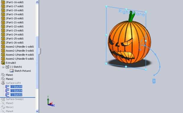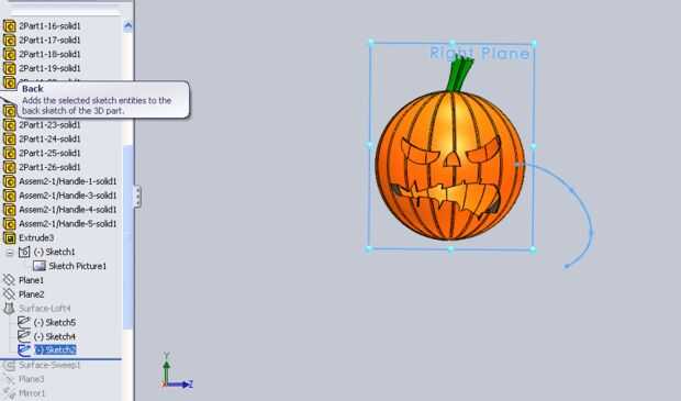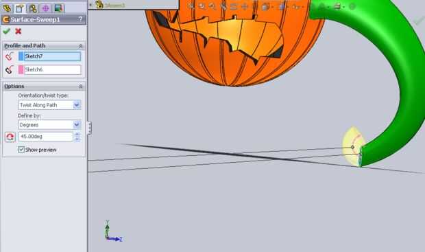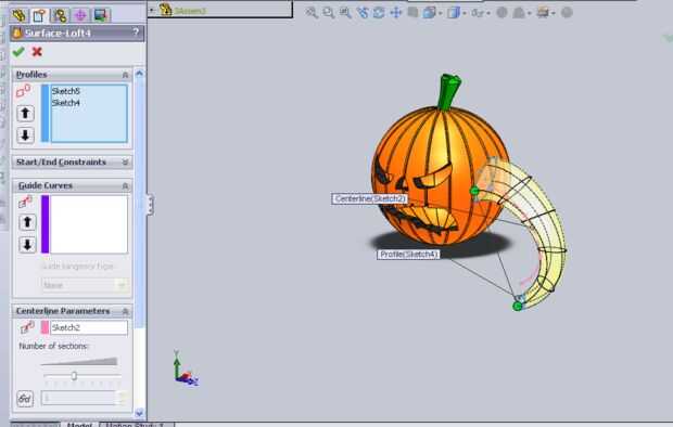 Dibujar una elipse en cada punto de la final de la spline, uno que sale de la calabaza más grande.