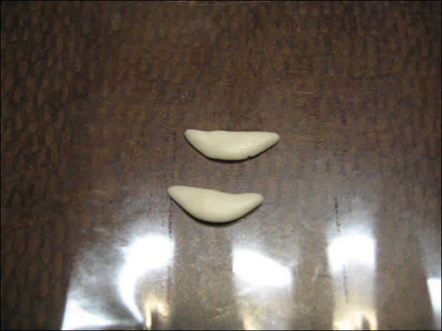 En primer lugar, hice una oreja (él consigue solamente uno) hacer un óvalo de pasta de azúcar y luego aplanarlo. A continuación, forma con los dedos y utiliza la herramienta de bolas más pequeñas para crear los detalles de la oreja. Esto se aplicó con una brocha, luego suavizar el borde de la oreja al lado de la cabeza con agua con la herramienta de la bola y los dedos y agua.