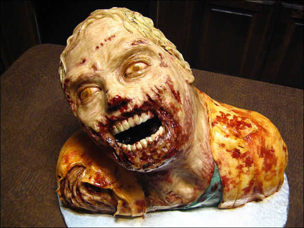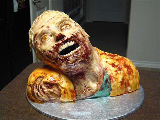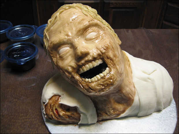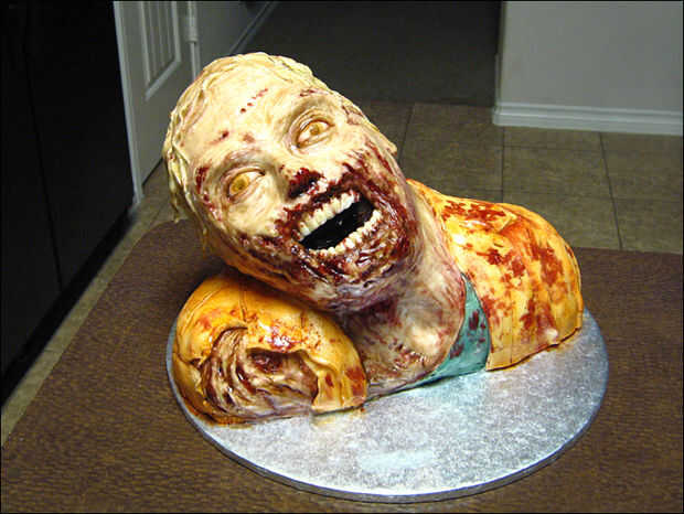 Y ahora el pastel está listo para ser devorado. Cerebros de pastel de zombie mmmmmm!