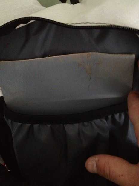 Ponga el paquete de hidratación en la mochila y los tubos de beber y la bomba de alimentación a través de las ranuras en la mochila.