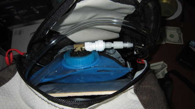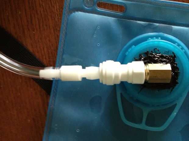 Llenan el pack de hidratación nada quieres y enroscar firmemente la tapa, conecte los tubos juntos y relampaga para arriba de la mochila.