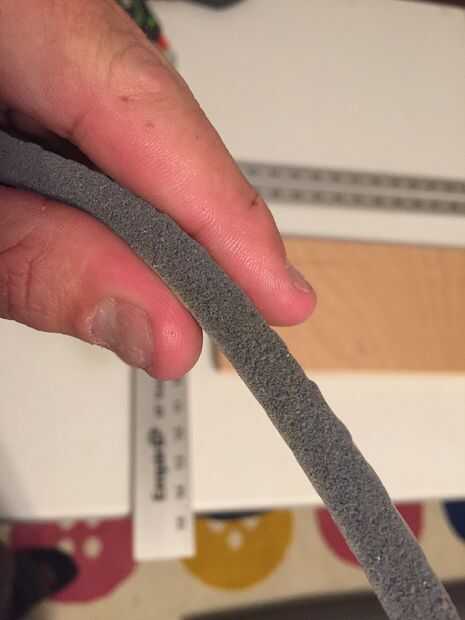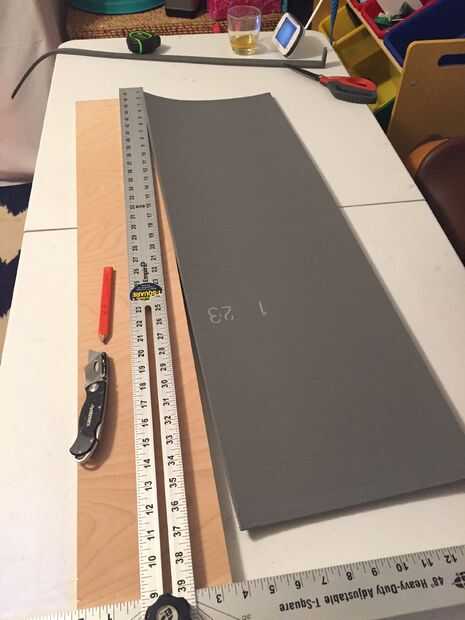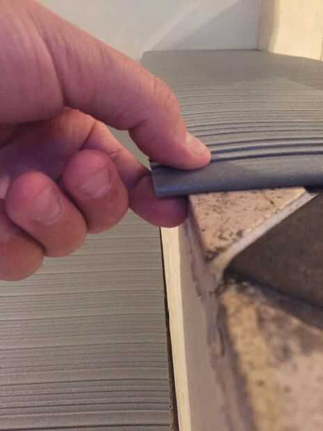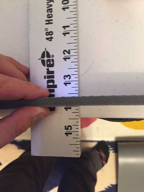 Continuación hasta necesitará medir y cortar las pistas (Lea: longitud) de sus escaleras. Asegúrese de medir cada independientemente como mi escaleras eran de diferentes longitudes. Nota muy importante: dejar un extra 3/8" para tener en cuenta el espesor del material en el lugar que más tarde será necesario para pegar junto (ejemplo en la imagen del saliente).