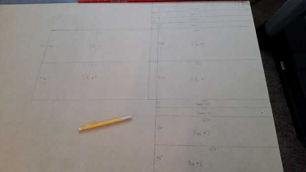 Dibujar sobre tu losa grande de madera, hacer las piezas de la otra madera. No tienes que hacer líneas rectas perfectamente aquí, pero ayuda teniendo en cuenta que probablemente no será capaces de cortar líneas rectas o bien.