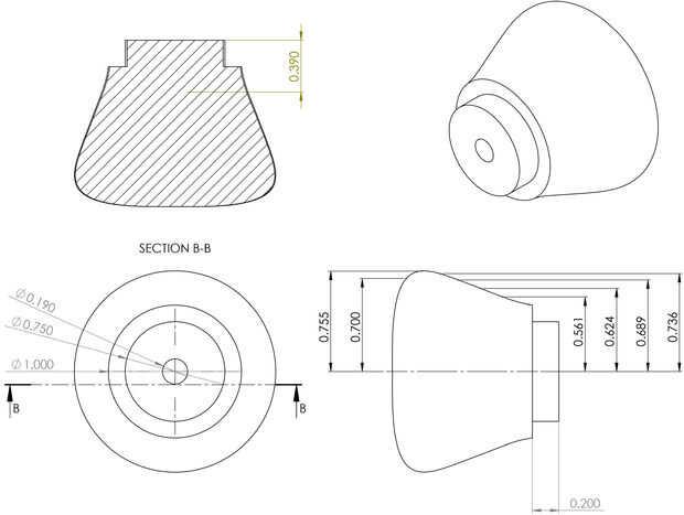 La pieza superior vino juntos en forma primero en un torno de madera. Dio vuelta abajo modulan hasta que me ha gustado mucho las curvas y la geometría. Me tomó varios intentos. Luego calcula ángulos y mecanizado en el torno.