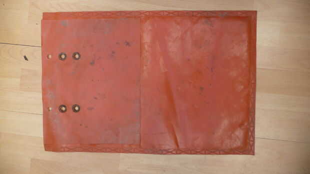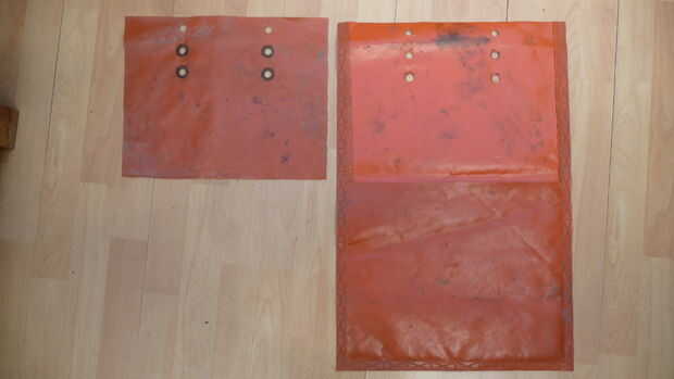 -Limpie el interior de la bolsa con agua (mucha arena restante será dentro) -Asegúrese de que la bolsa esté seca (interior y exterior) -elegir el peor lado de la bolsa (el que está sucio) -recortar la mitad plástico capa (ver primera imagen). -mantener la parte cortada para próximos pasos.