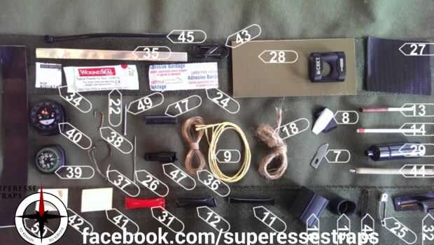 CATEGORÍAS de artículo de supervivencia: Corte, incendio, asistencia y reparación, alimentos y agua, navegación/señalización, herramientas tácticas, apoyo