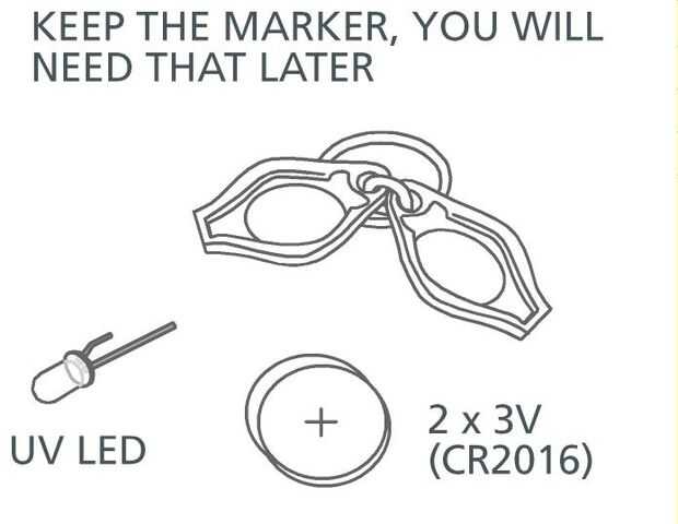 Las baterías que vienen con más luces de llavero son estos CR2016 (que es 20mm de diámetro y 1,6 mm de espesor BTW). Sentí que el diámetro de 20mm era demasiado para una tubo manija así que miré a mi alrededor para una batería de 6 voltios más estrecha. Lo mejor que encontré fue la cámara 6V batería 4LR44. Como todos nuestro se une a la batería va a estar grabando los cables en las menos pilas que tenemos que unir el mejor, así que una sola batería de 6v todo es lo que quieres.