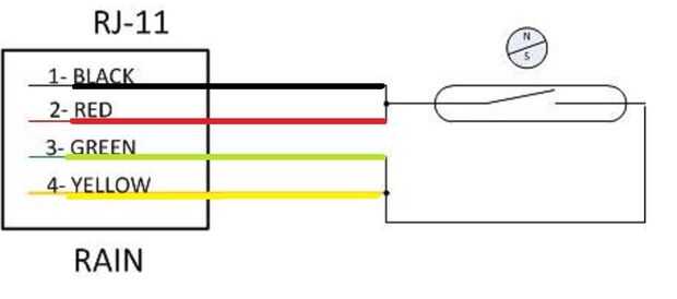 El cableado se ve sencillo, debe no importa cual cable par se utiliza en que pin del interruptor reed ya que es un arreglo simple de "contacto seco". (no hay ninguna energía requerida al sensor para que funcione). Usé el voltímetro en modo continuidad para determinar que conducen del relé fue puesto a tierra.