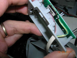 Cuando volver a montar y conectar el sensor al bloque de entrada de la estación y lo enciende. Para probarlo, simplemente rock los volquetes lentamente hacia adelante y hacia atrás, la lluvia debe ahora contando up...if escucha atentamente se puede escuchar un leve clic como el imán pasa por el switch, incluso si no se oye, como la cuenta de la lluvia es incrementarlo es todo. Pero... no funcionó inicialmente. La imagen muestra cómo se fue originalmente por cable, que de hecho, no será sin una ligera modificación en la placa de circuito. . Al parecer, este extremo del interruptor reed sigue conectado con el resto del circuito transmisor hay un camino de baja impedancia a tierra, bajo bastante de todos modos, que las cuentas no Haz detectadas por el asistente!