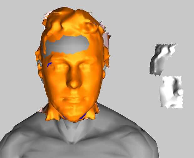 Ahora que tenemos un modelo podemos afinarla un poco más. Seleccione las zonas donde se encuentran la cabeza y el cuerpo de una manera torpe. Esto será generalmente alrededor de la mandíbula, la parte posterior de la cabeza y orejas. Asegúrese de seleccionar pequeños parches sobre grandes áreas, use la herramienta borrar y relleno para nivelar y alisar estas áreas.