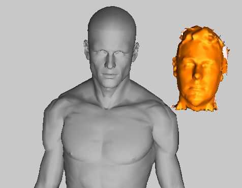 Abrió en NetFabb y exporta como un OBJ, luego importados en MeshMixer. Importado mi cabeza, asegurándose de que al añadir en lugar de reemplazar. La primera cosa que noté fue que mi cabeza literalmente unos cien veces más grande que el cuerpo. He probado seleccionando el cuerpo y haciendo una deformación enfrenta a transformar, pero tanto el modelo era demasiado compleja o, más probablemente, los ojos independientemente modelados y boca me impidieron escalar hasta el tamaño de la cabeza. En su lugar tuve que achicar la cabeza.