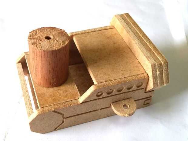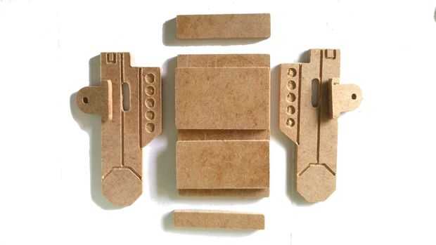 La cadera se compone de un cuerpo principal y una columna, que será el "cuello" de nuestro STand en. El acabado en la parte posterior de la cadera se compone de tres partes, uno grabado. Colocar estas tres piezas antes de comenzar el montaje y permite establecer en el último grupo.