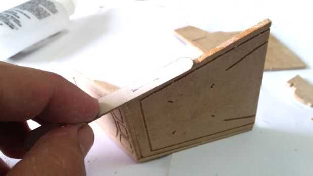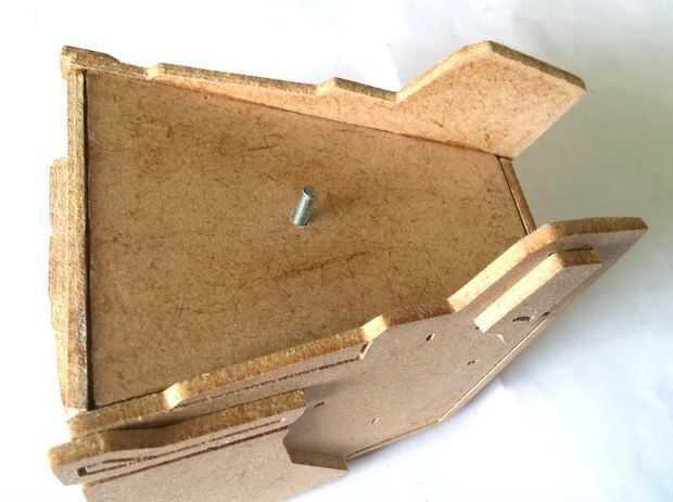 Una vez Unidos y alineados estas piezas, puede colocar la parte inferior. Está alineado con la pieza frontal y el extremo de las piezas laterales (véase la foto). Esta pieza tendrá un tornillo de 16mm en el orificio existente cerca de su centro. Si es posible, seguro con una cinta resistente, de lo contrario corren el riesgo de que soltar cuando se fija en el cuello.