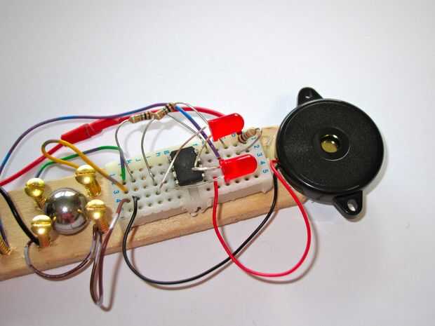 La última foto muestra un experimento con un interruptor de inclinación con los tornillos en la madera, buscando una manera simple para los niños a construir ellos mismos. Pero necesita algunos todavía.