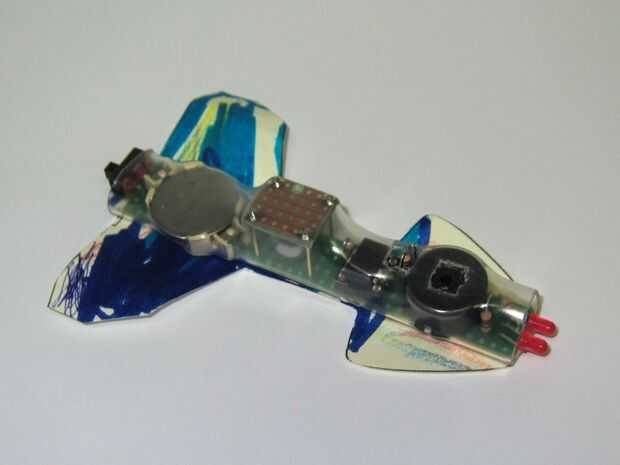 Después de colorear y cortar, estaba atascado en el módulo de electrónica con cinta de doble cara.