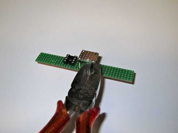 Se retiran las piezas de plástico por aplastamiento con alicates de punta planos. Esto evita dañar los alicates de corte de pernos ingenio. Después de machacar, el plástico se puede apalancar apagado.