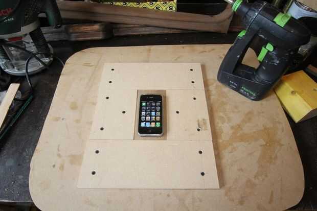 Una vez tuve dos bloques más grandes un poco más grande que el iPhone, es sólo una cuestión de la construcción de una plantilla para el router. Terminado todo la plantilla que tenía que hacer era un poco de medición y puesta a punto el Departamento de trabajo de la fresa.