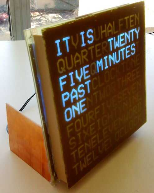 Un Manual plantilla - cubre la construcción del kit plantilla que cubre la pantalla de LED para formar las palabras.