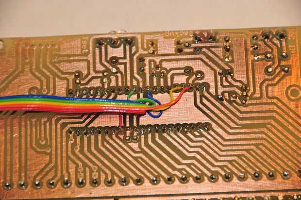 Luego, necesitamos agregar el cableado para los LEDs en la parte posterior de la tarjeta controladora - hay unos pasadores de repuesto que no se utilizan realmente que podemos utilizar para el minuto.