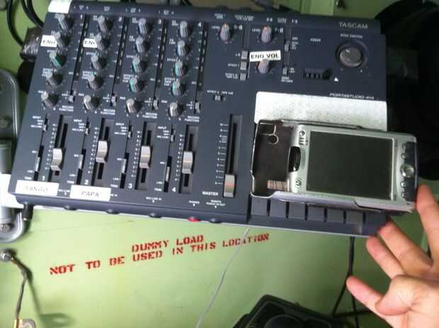 Low behold sacó una vieja pocket PC, con la cáscara endurecida. Con unos agujeros perforados y unos tornillos para sostenerlo en su lugar.