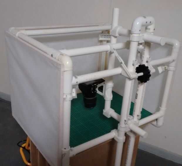 Se trata de una plataforma pull-apart del Instructable aquí y aquí.Los criterios de esta marca son:Levantar la caja de luz a una altura donde se puedePasa el ratón sobre el visor de la cámara en su posición más alta.Situar los objetos en el escenario