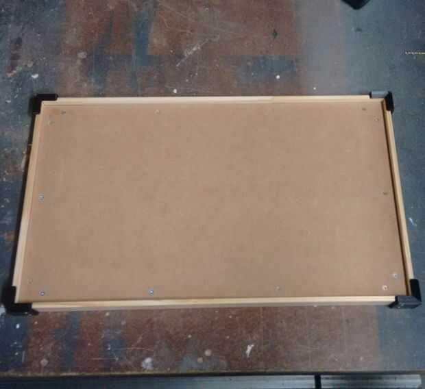 9. Fijar el MDF a las piezas de L con tornillos de 4 x 15 mm cabeza avellanada.