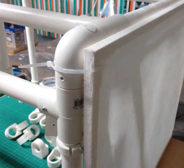3. Fije el panel a los tubos verticales utilizando las bridas de 150mm.