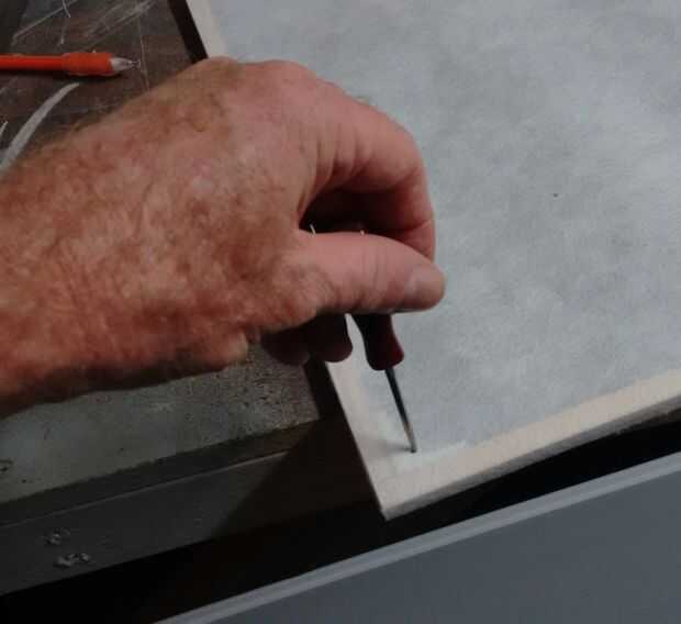 2. Coloque el panel contra el lado del marco sentado en chatarra 12mm MDF como espaciador.