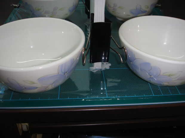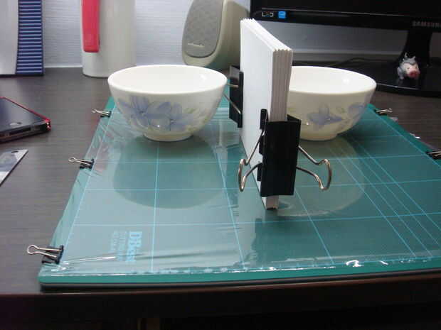 después de envolver, necesita algún apoyo para mantener el portátil en su lugar mientras el pegamento seca. en mi caso, cuencos pequeños fueron lo que utilicé. otros objetos están bien siempre y cuando te sientas cómodo con el trabajo con ellos.