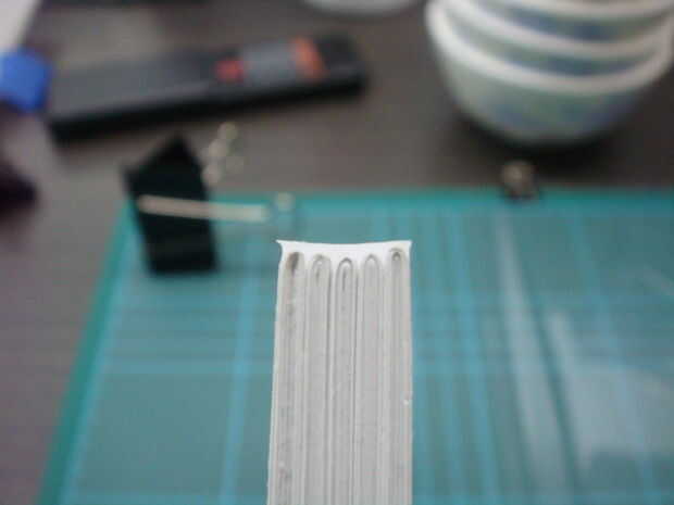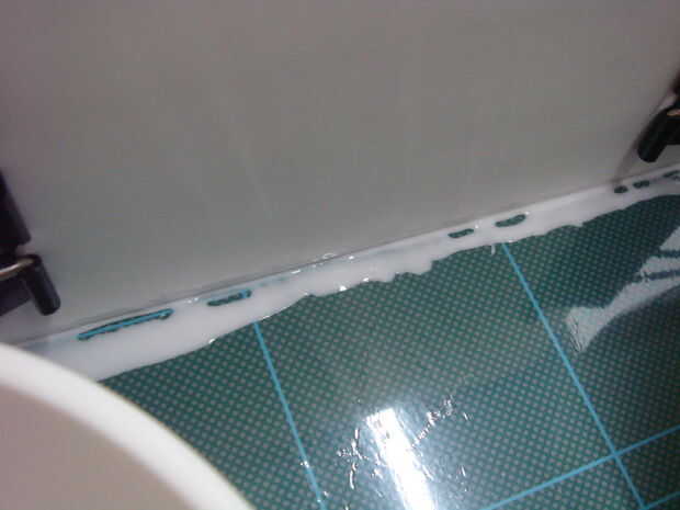 Una vez hecho esto, exprima el pegamento sobre la parte superior de la "columna vertebral" como se muestra en la imagen. la cantidad debe ser suficiente para llenar toda la "espina dorsal" con cierto exceso. Tenga cuidado de no exprimir demasiado o pegamento acabará fluyendo todo sobre el lugar que esencialmente estropea todo.