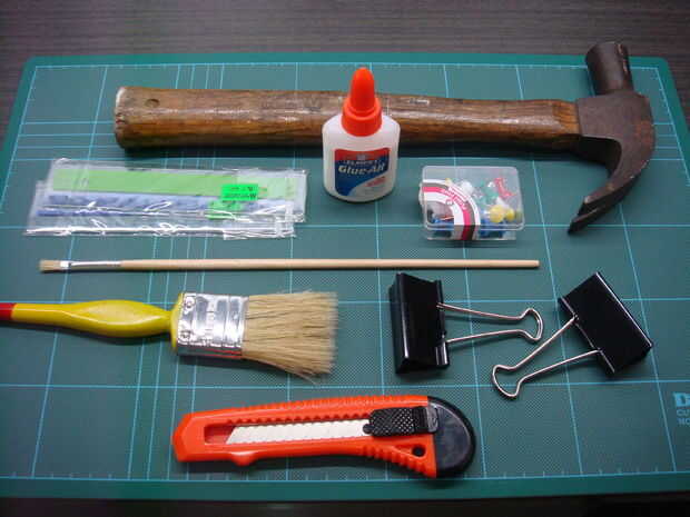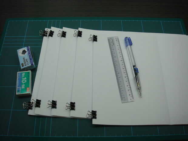 -lápiz y la regla más pequeña (para hacer las marcas para los agujeros de las grapas).