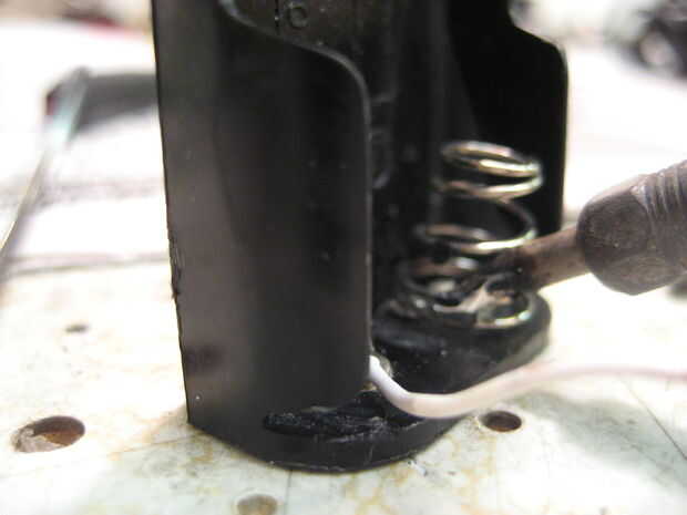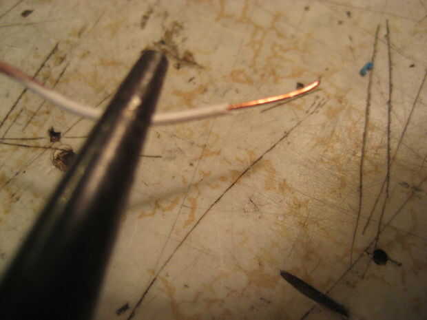 Use los alicates de punta para sujetar los cables mientras tira una pequeña cantidad de la chaqueta del cable. Luego soldar el cable en cada uno de los contactos sobre el caso.