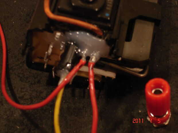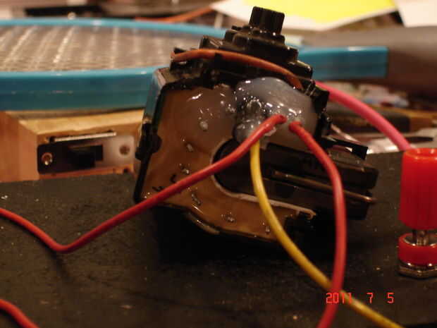 Esto es fácilmente la mayor parte consume tiempo y tediosa de la construcción. Mientras que muchas otras personas podrían rebobinar sus propias bobinas primarias en el flyback, prefiero utilizar los que ya están disponibles, ya que ellos son ya muy bien en maceta en el flyback. A diferencia de la mayoría circuitos de controlador de flyback que utilizan una bobina primaria y la retroalimentación, sólo usa una bobina primaria. Para encontrar la bobina primaria, su abajo a ensayo y error. Con un multímetro, mida la resistencia entre cada par de pines. Me parece que en la mayoría de índice flybacks, las bobinas del primario (ya que suelen ser más de uno) están situadas para que sus entradas están cerca unos de otros. Dicho esto, esto no es siempre el caso. Como se mide a través de cada conjunto de pernos, tomar nota de sus resistencias, con la resistencia más pequeña tiene el menor número de bobinas. Este es el que tras. Sin embargo, asegúrese de que se trata de una bobina independiente, y que no es un tercer pin conectado a él. Una vez que esta bobina se encuentra, la bobina secundaria debe ser situado. Parte de esto se hace ya, desde un "pin" es la grasa (generalmente rojo) que sale de la parte superior del transformador y que tiene una ventosa en el extremo. El método para localizar el segundo pin es relativamente crudo. Conectar una batería de 9 voltios a uno de los pines de la bobina primaria con una pinza y al otro pin de la bobina primaria, conecte la pinza cocodrilo. No conecte esta pinza a la batería aún. Tomar el cable rojo de la grasa y con la taza de la succión quitados y al final despojado, colocarlo cerca de uno de los pines no utilizados. Toque el terminal desconectado de la batería con la pinza suelta y buscar una chispa entre el cable y el pin. Si no hay ninguno, lo acerque y vuelva a intentarlo. Si todavía hay no hay chispa, pasar el siguiente pin. Si el alambre no chispa en ninguna de las patillas, invertir la polaridad de la batería y vuelva a intentarlo todo el proceso. Finalmente, descubrirá el pin que busca. Antes de desconectar la batería del flyback, tome nota de la polaridad de los pines de la bobina primaria. Si está usando uno de los nuevos índice de flybacks, la polaridad es importante, ya que contienen un rectificador y un circuito multiplicador de voltaje. Una vez que la bobina primaria se encuentra, soldar dos cables a él y el pin que la grasa cable rojo chispas, otro alambre de la soldadura. Entonces, sólo para estar seguro, pot las clavijas de pegamento caliente. Asegúrese de usar un montón de pegamento y llenar todos los huecos y espacios. Esto previene la formación de arcos indeseada. Una vez hecho esto, la bobina está todo listo.