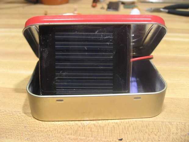 Y eso es todo. Hemos terminado. La mejor parte es que la célula solar encaja perfectamente dentro de la bandeja por lo que podemos cerrar la parte superior. Nadie sabría nunca que tenemos un cargador solar interior.