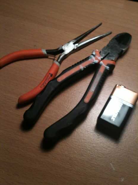 Probablemente tiene algunas baterías aaaa genial, gratis, sentados en su casa y puede no saberlo! Lo que usted necesita: pila de 9 voltios, alicates de punta, tijeras de alambre (tal vez)