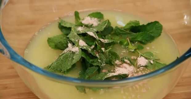 Añadir hojas de menta, azúcar, sal negra, sal y polvo de semillas de comino y mezcla bien. Luego agregue el hielo y mezcle otra vez.