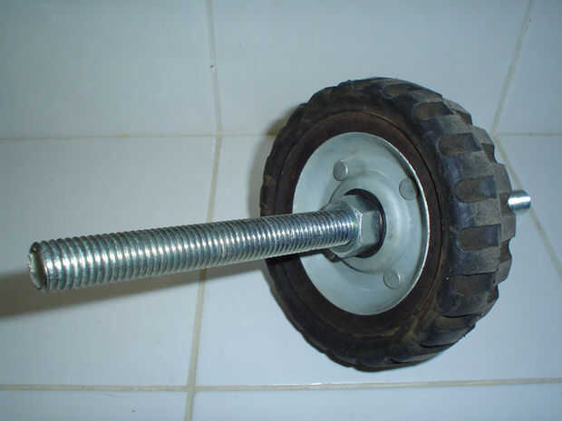 -Coloque la rueda en medio de la varilla y fíjelo con dos tornillos.