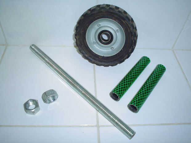 -2 trozos de manguera de jardín (tienen que caber firmemente sobre la barra)